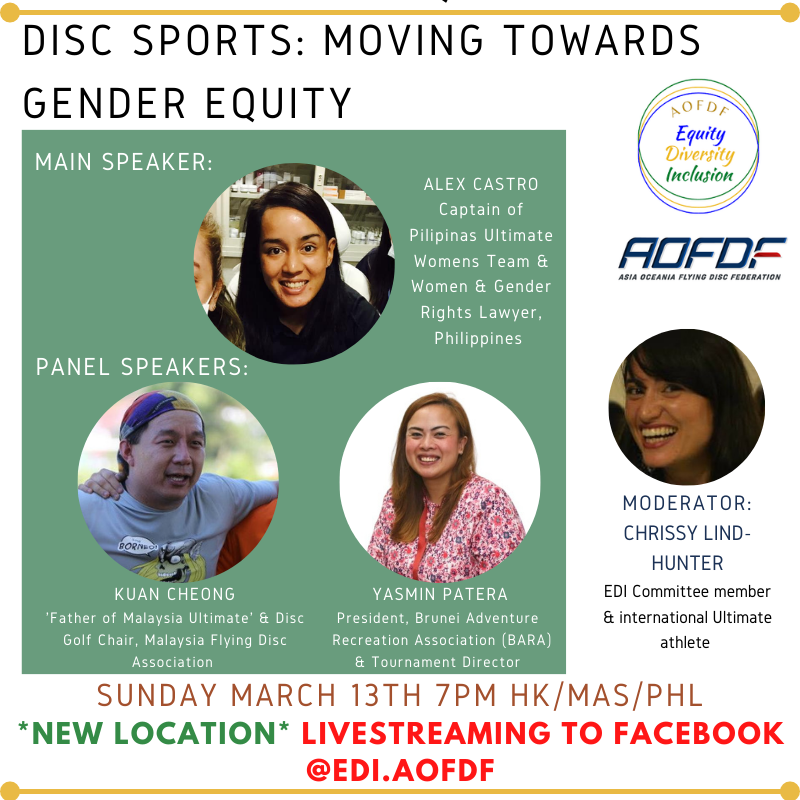 Listen to diverse speakers discuss perspectives and experiences of gender equity in disc sports in the Asia-Oceanic region as we start a new series of discussions.